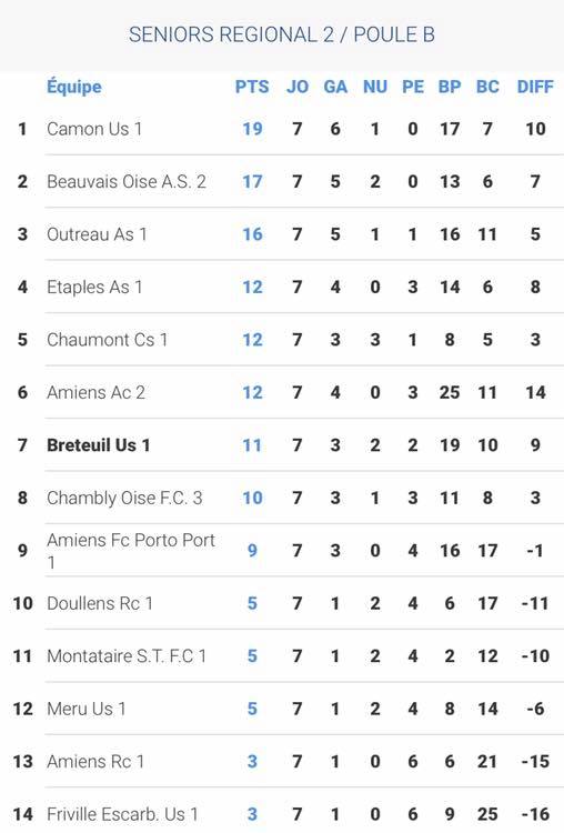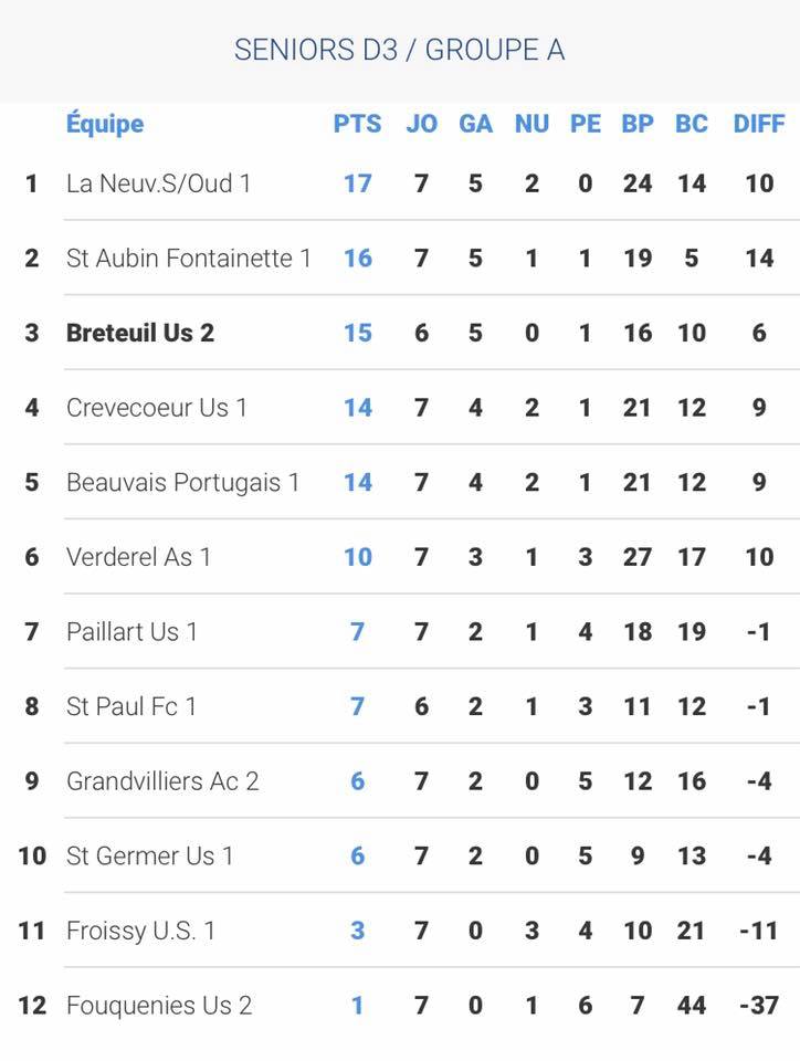 Retrouvez ci-dessous le classement des différentes équipes en championnat.