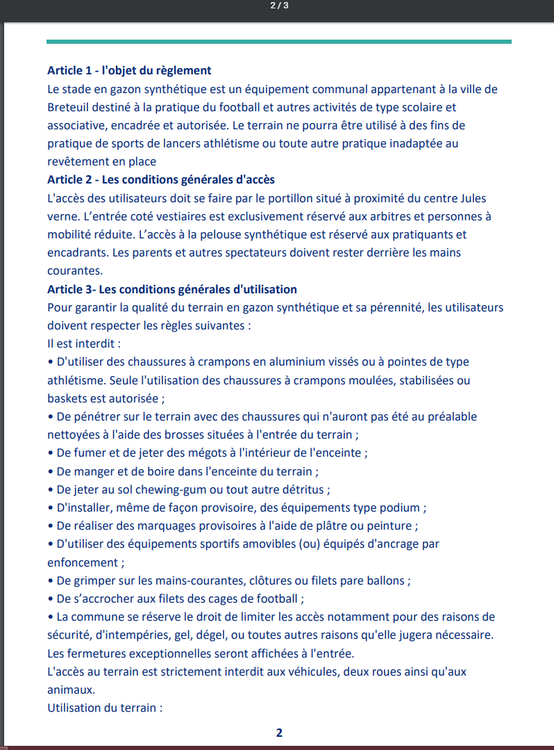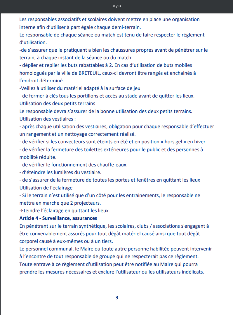 Voici le règlement intérieur qui doit être appliqué sur le nouveau stade synthétique Frédéric Maître.