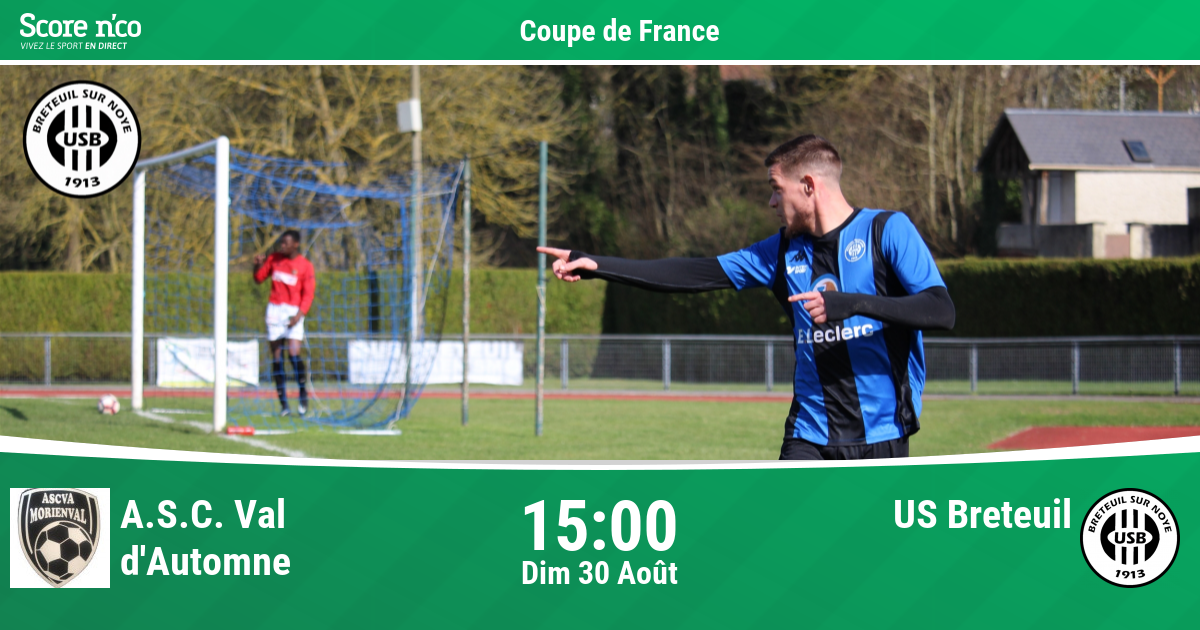 L’US Breteuil jouera contre Morienval alias ASC Val d’Automne (ascva Morienval foot seniors) le 30/08/2020-15h au premier tour de la coupe de France.